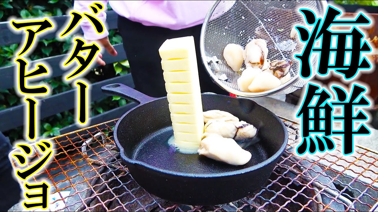【キャンプ飯】スキレットで海鮮バターアヒージョやってみた!