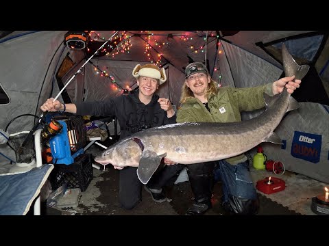 Overnight Ice Camping for Giant Sturgeon!